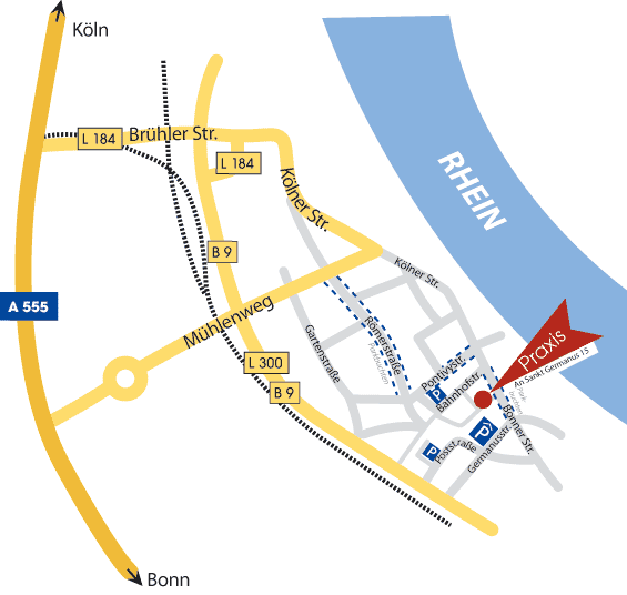 Mit der Stadtbahn bis Bahnhof Wesseling.